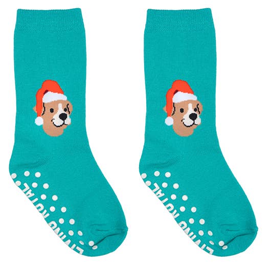 3D Packaged Crew Socks - Kids - Santa Puppy -Teal