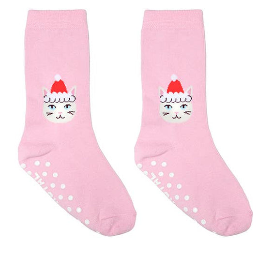 3D Packaged Crew Socks - Kids - Santa Kitty -Pink
