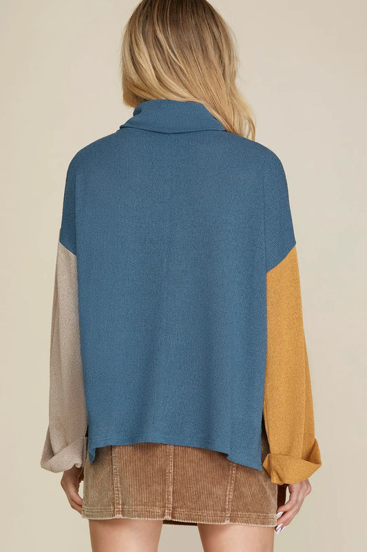 Mock Neck Color Block Knit Top