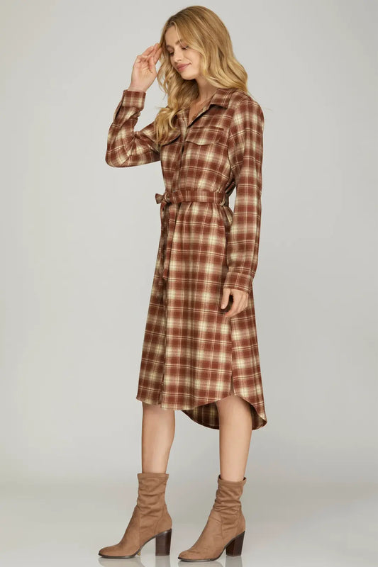 Long Sleeve Midi Shirt Dress