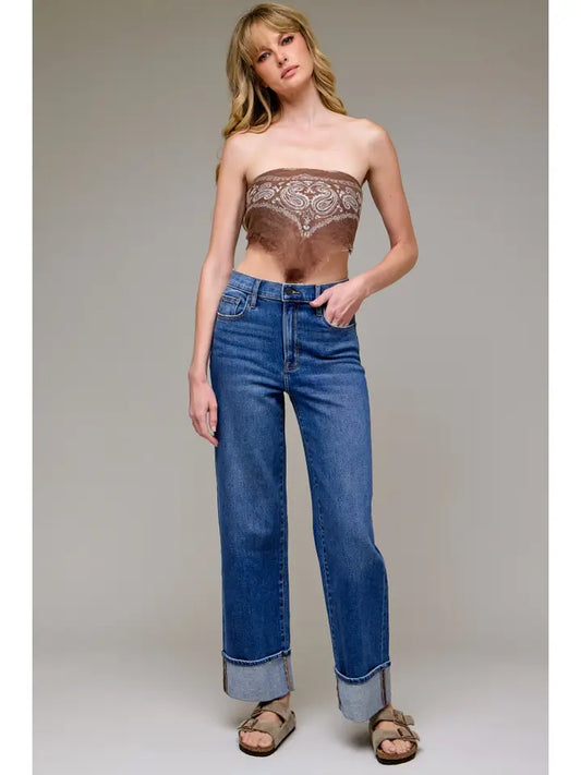 Dark Wash Cuffed Stretch Clean Dad Jean
