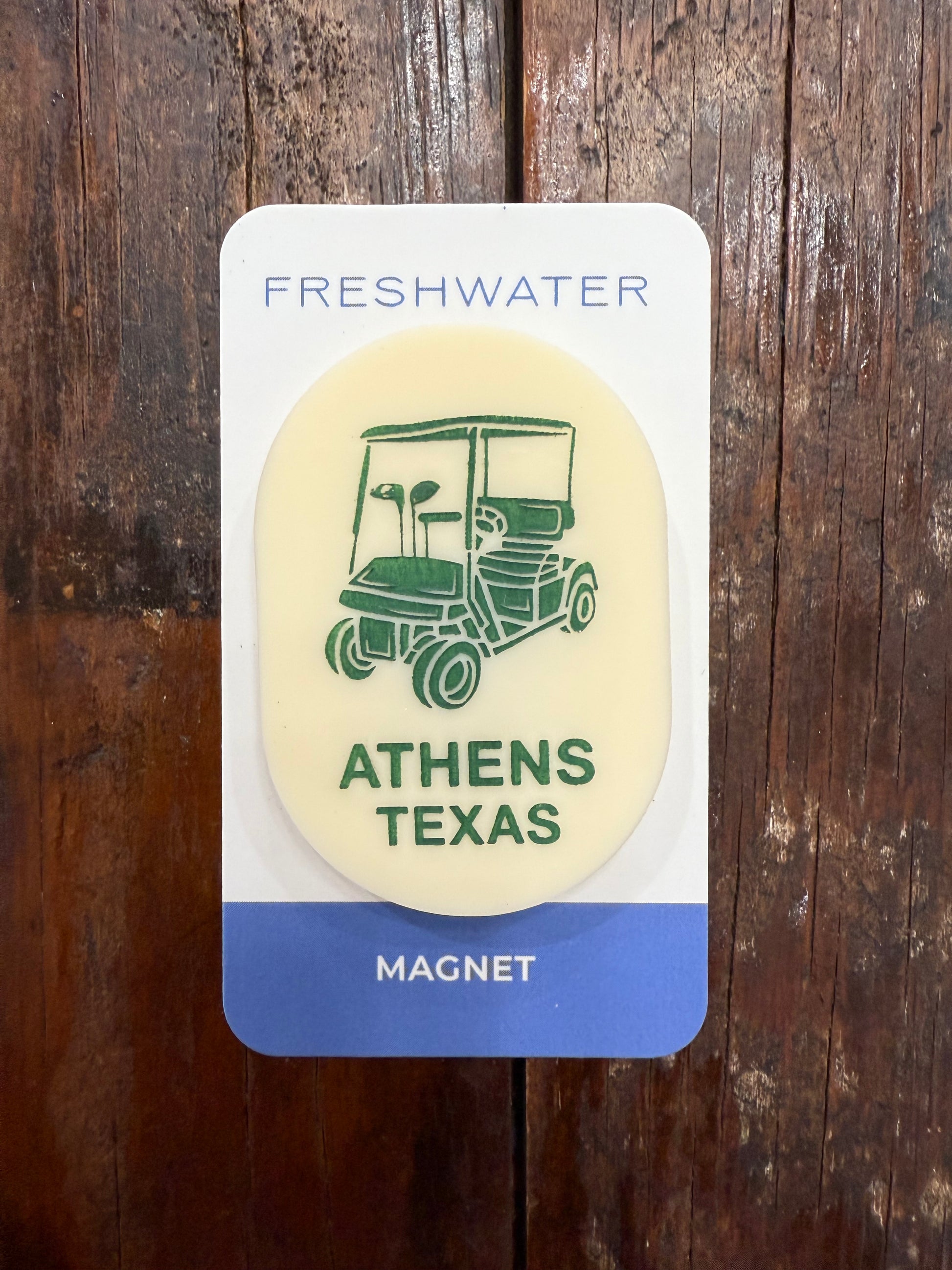 Celebrate your love for the game with this Athens Golf Cart Magnet! Featuring a green design engraved into sleek resin, this magnet is perfect for golf enthusiasts and country club dwellers alike!