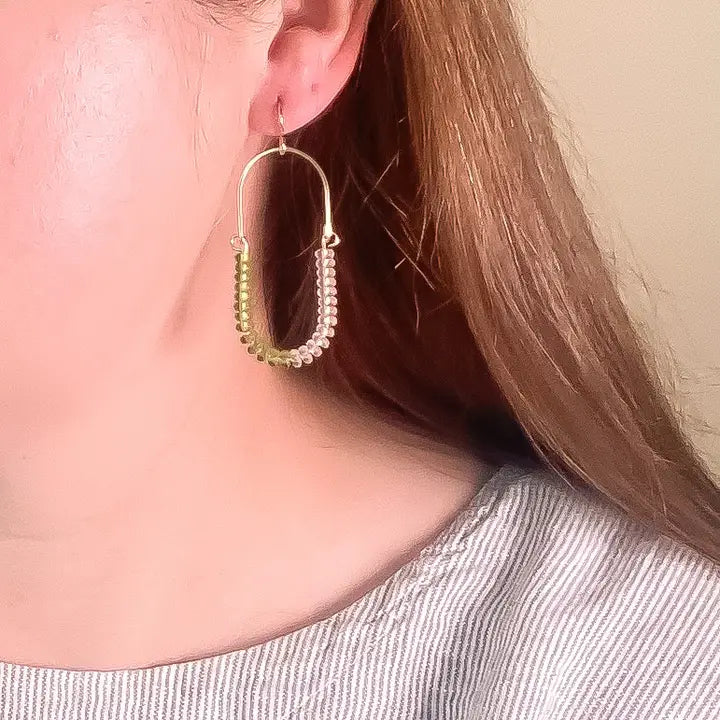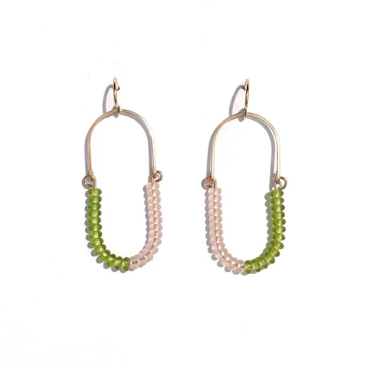 * Curved 14kt gold filled wire * Olive + Rose Czech glass beads * 14kt gold filled earhooks * Earrings are 1 3/4" long * Lightweight