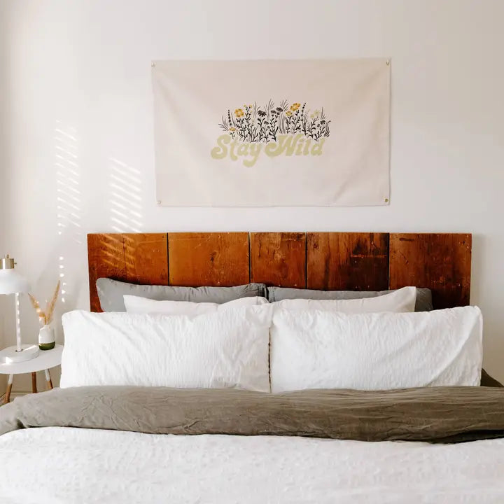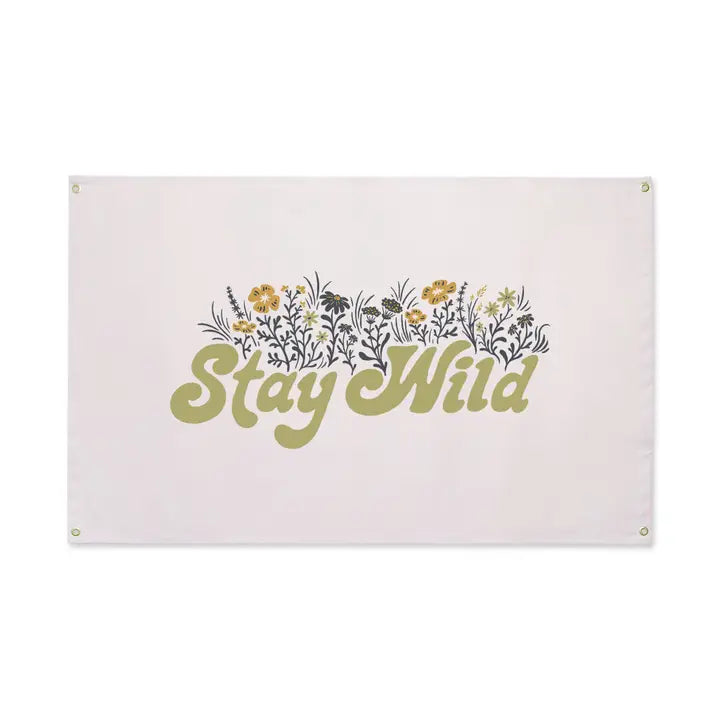 The Stay Wild Canvas Flag features striking 10oz Natural Cotton Canvas material and hand-screened ink prints - all hand-sewn and printed by artisans right here in the USA. The Large flag measures 31" x 48" (that's big!).