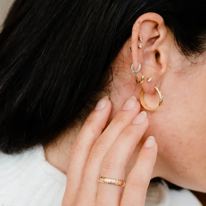 This vintage-inspired, textured ring is the perfect balance of feminine and modern. Featuring a delicate floral design that adds a timeless and classic edge to your everyday jewelry lineup. * 14k gold filled * Handcrafted in Nashville, TN