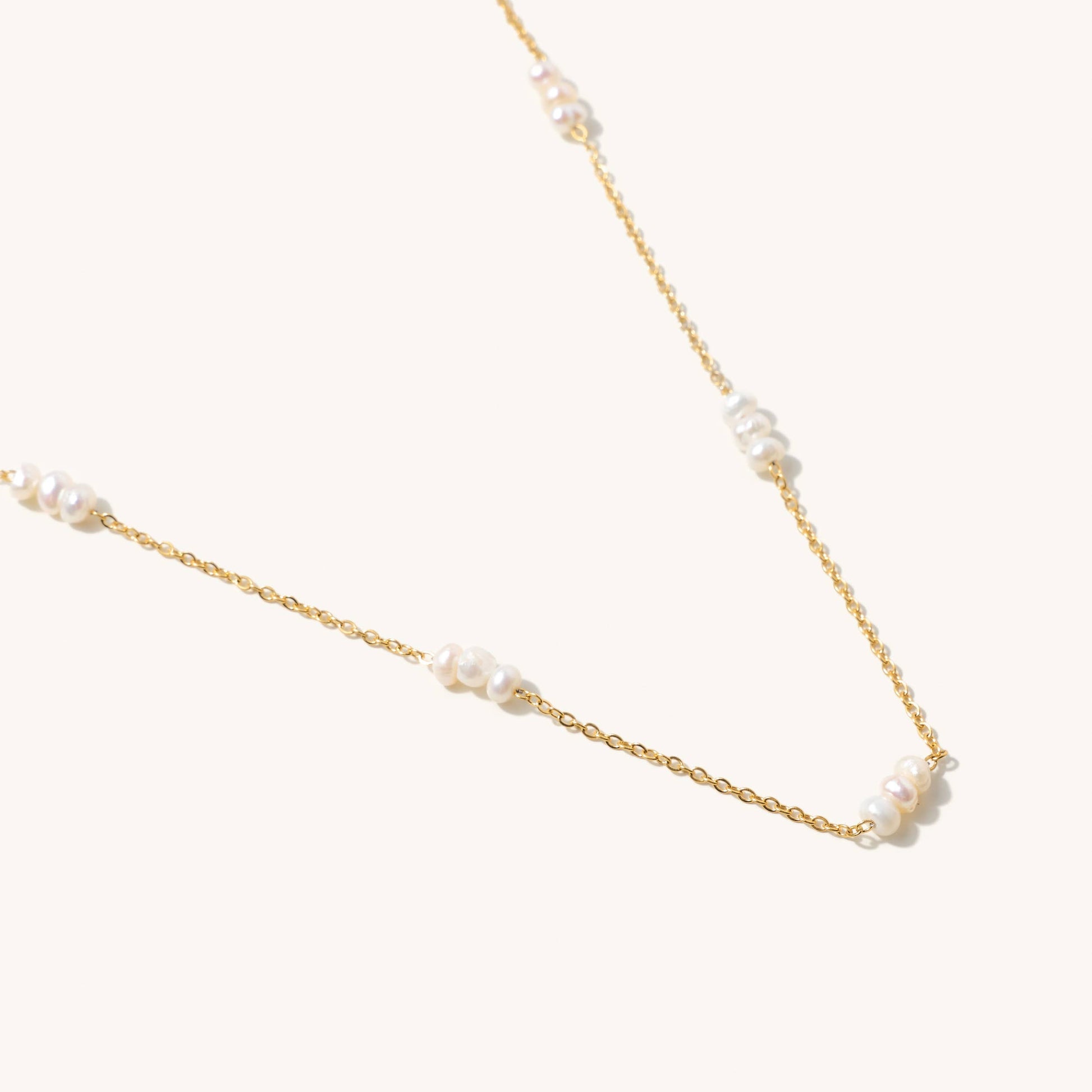 Indulge in everyday luxury with this exquisite gold and pearl necklace. The perfect blend of simplicity and sophistication makes it a versatile accessory for any occasion!