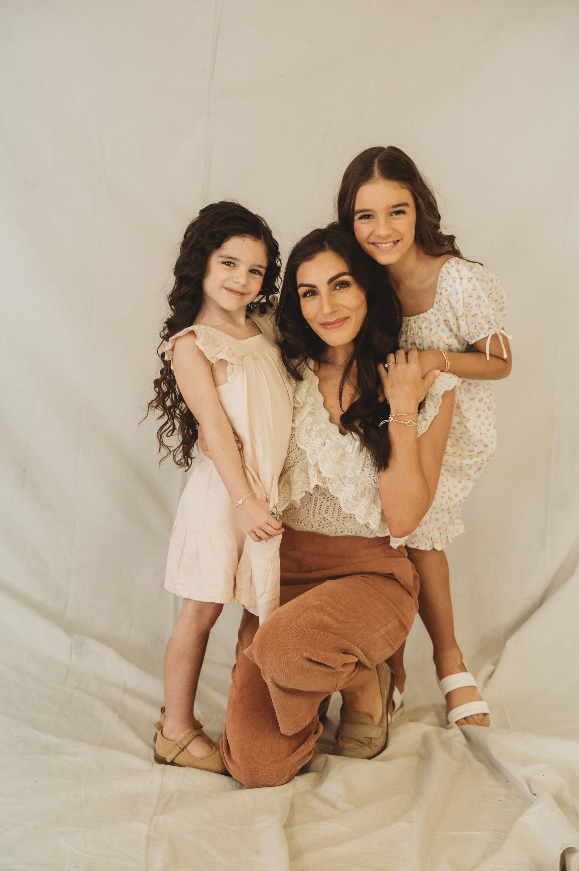 "Mother/Daughter" set. This heartfelt bracelet hair tie set symbolizes the eternal bond between mother and daughter, with four heart charms expressing that the daughter's heart came from and is forever connected to her mother's.