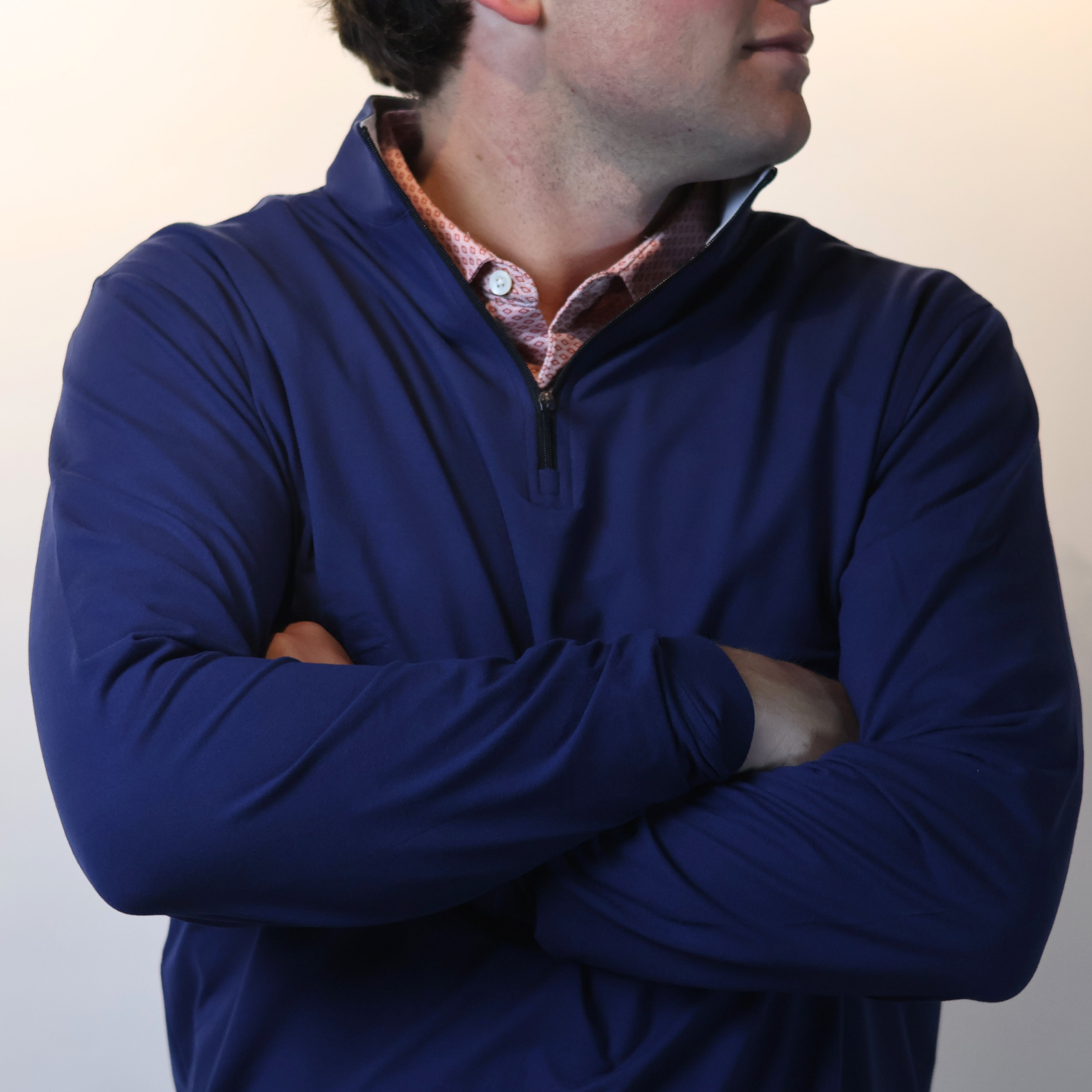 Built to perform anywhere you go. The Cowboy Country Club Luxury Performance Quarter Zip blends a sleek, refined look with premium comfort and stretch. Crafted from a smooth nylon performance fabric, it offers a lightweight feel, moisture control, and a tailored fit that moves with you.
